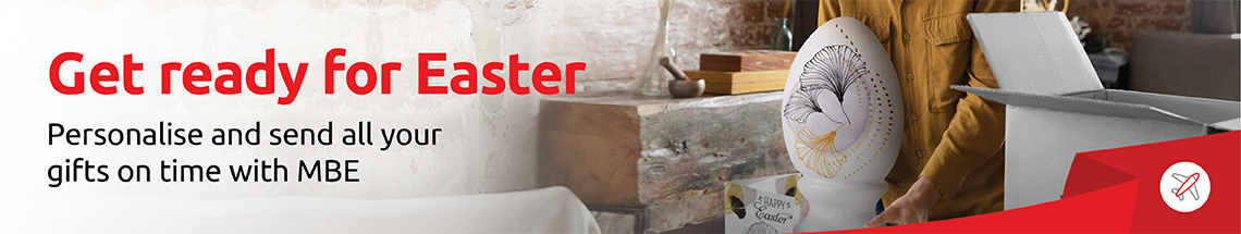 There’s still plenty of time to order your personalised Easter greetings and work with our in-store experts to ensure they’re safely packed and delivered on time – anywhere in the world. We offer a choice of leading carriers, trackable services for timely delivery and our very own MBE CoverProtect scheme for complete peace of mind if the unthinkable should happen.